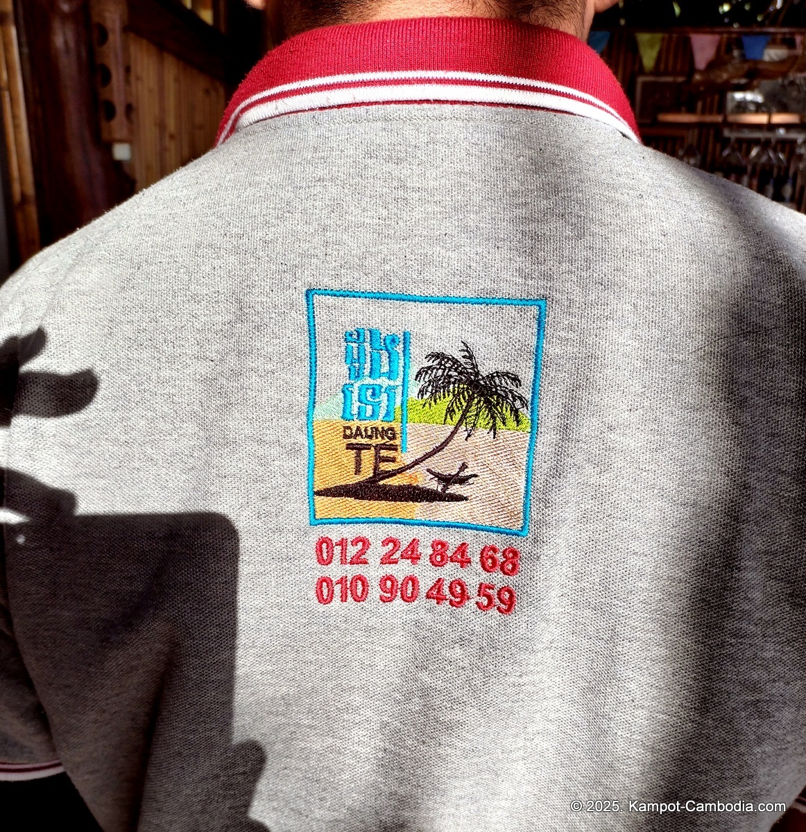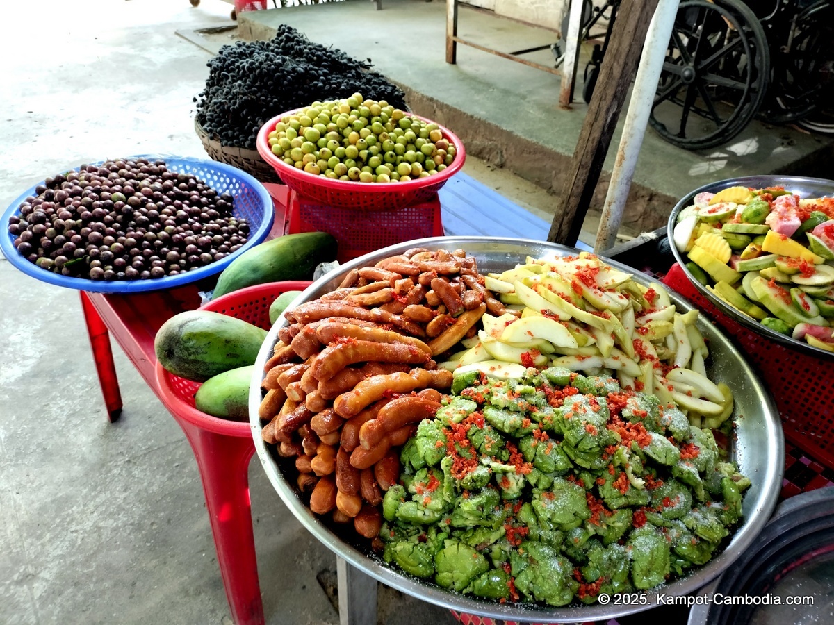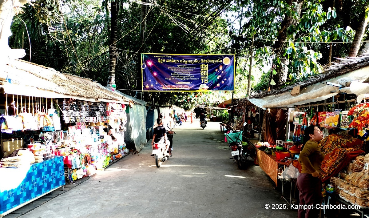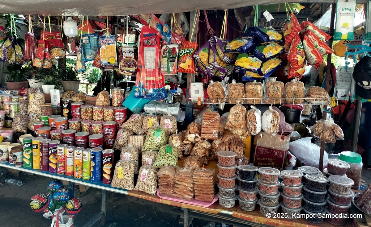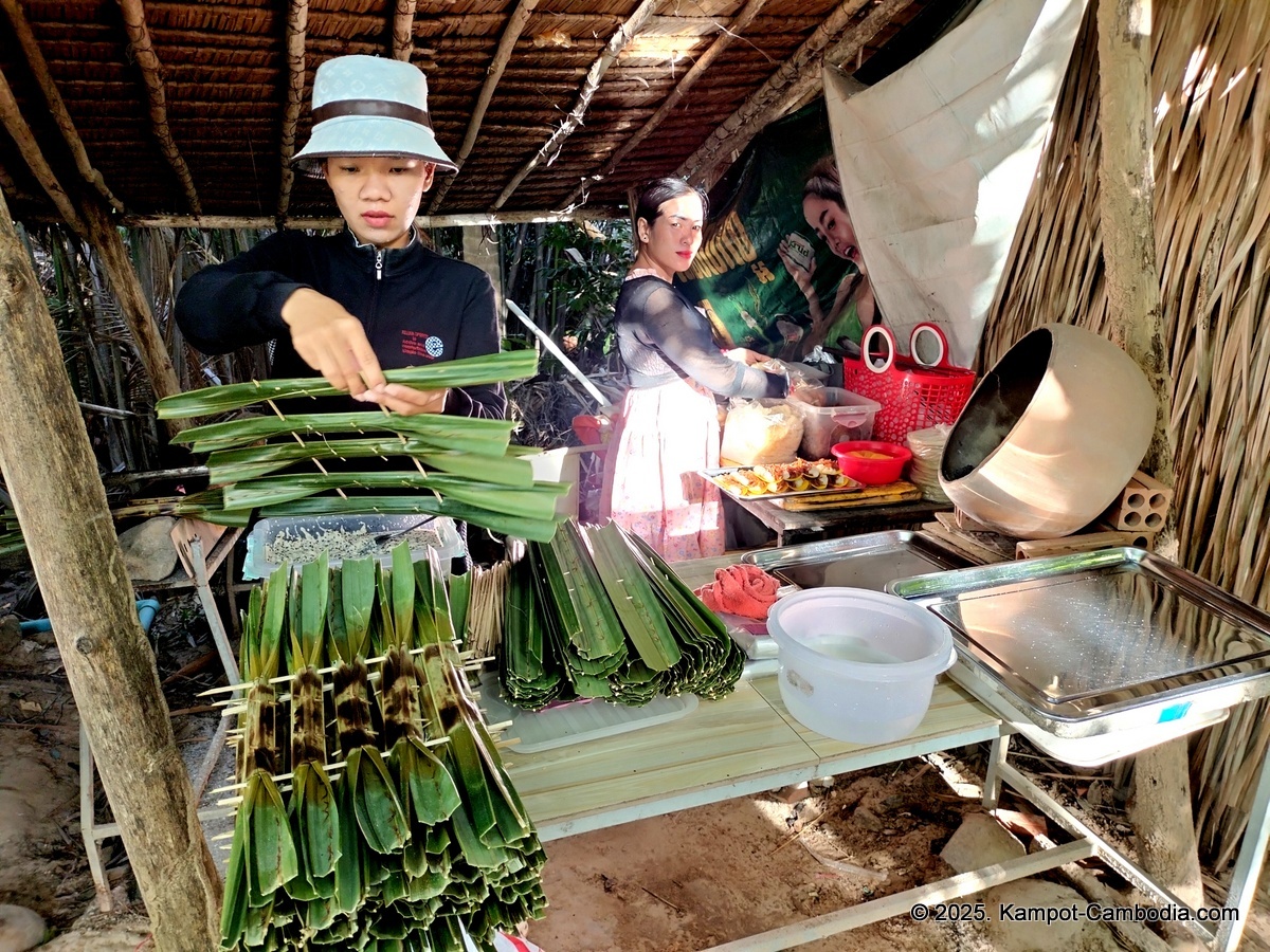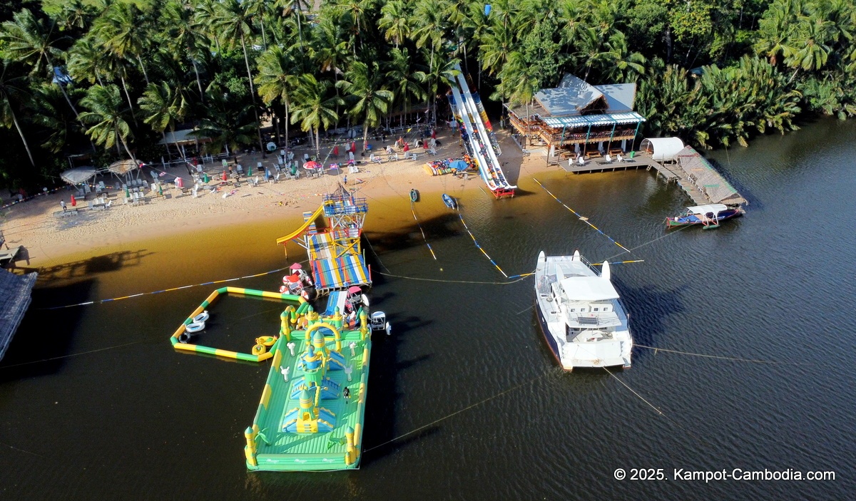 Right on the Kampot River across from downtown and upriver a few 4 or 5 kilometers, and 150 meters off the road