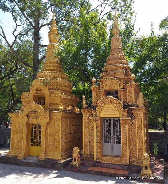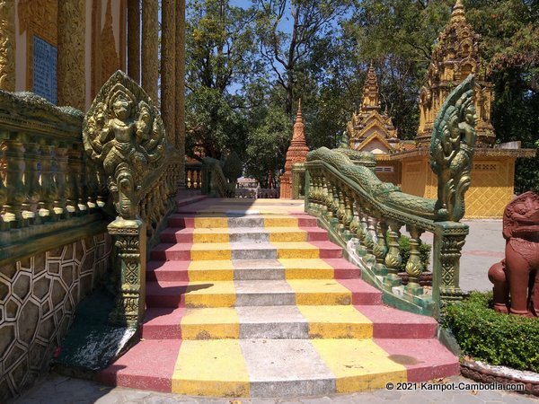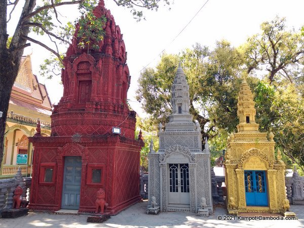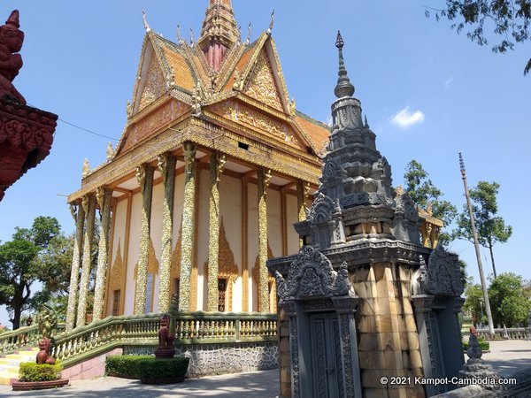 Kampot has a lot Wats.  Maybe 50 around town.  These are Buddhist Temples that are found throughout Cambodia. (you know, like Angkor Wat.)  They house the Monks that you will see most mornings, walking barefoot down the street, and stopping at homes and businesses along the way.  They are collecting food or money to support the Wat, and the Monks give a short prayer to the giver.  Most Buddhist ceremonies are held here as well.